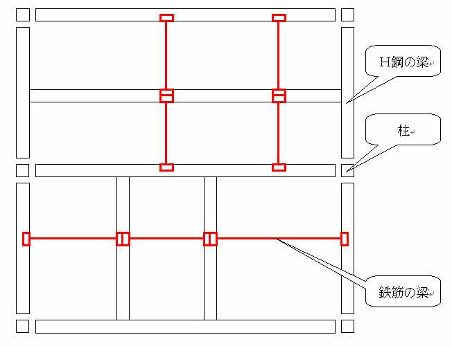 | 剛床システム | H鋼梁と鉄筋梁の関係 |