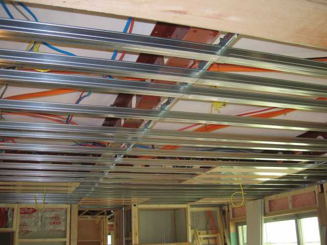 | 軽鉄天井下地 | 天井下地は、スチール野縁(軽鉄天井下地)で組まれます。 |